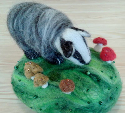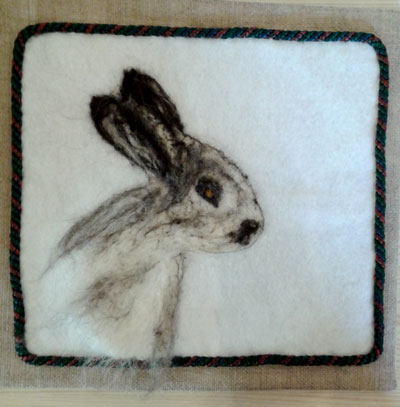 Last Summer all members were invited to take home 50g of white Shetland carded fleece and 50g of black Shetland. The theme was black and white. As you can see some of us love to break the “rules!” Enjoy the results!