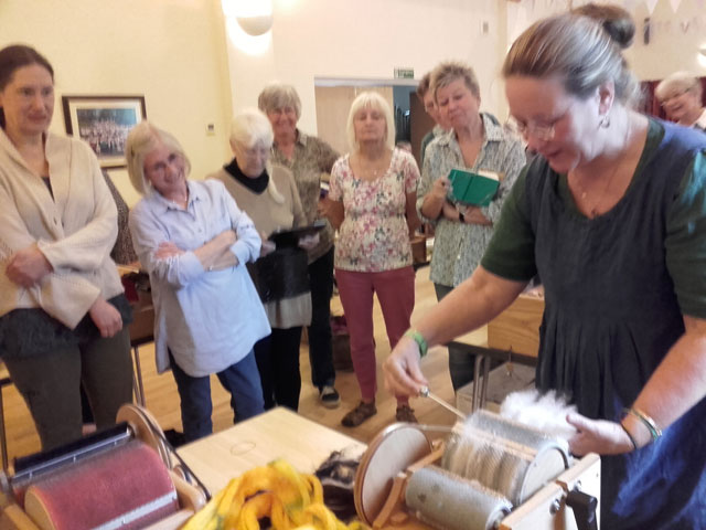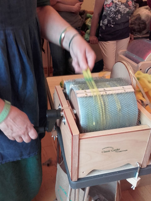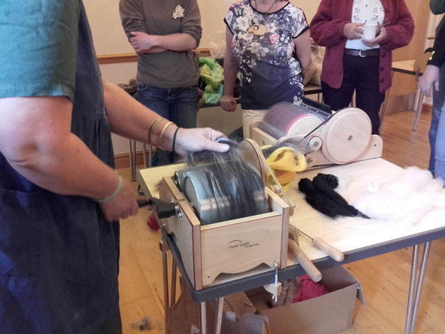 Saturday 16th June 2018, at Mungrisdale Village Hall was once again a hive of activity as we were shown how to colour-blend on a drum-carder.