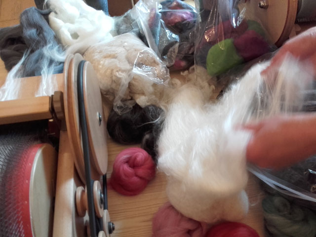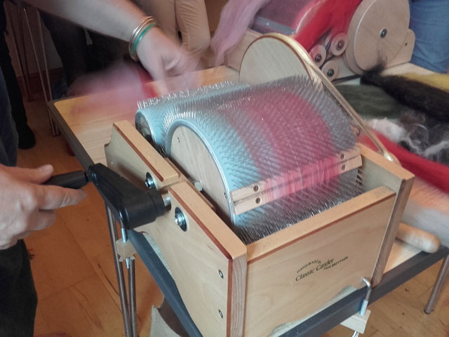 Besides learning how to get the best out of our drum-carders, we were able to try several different brands and understand their different capabilities and the usefulness of different tine sizes.