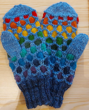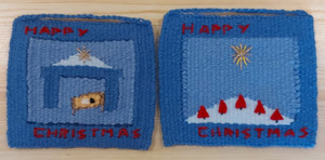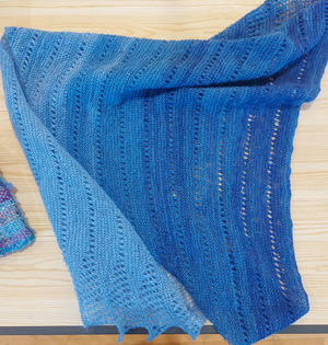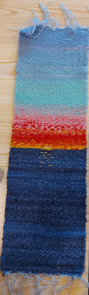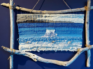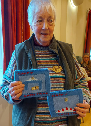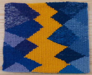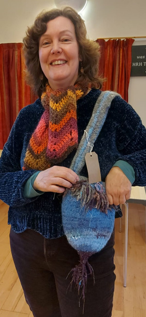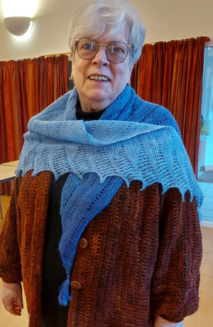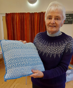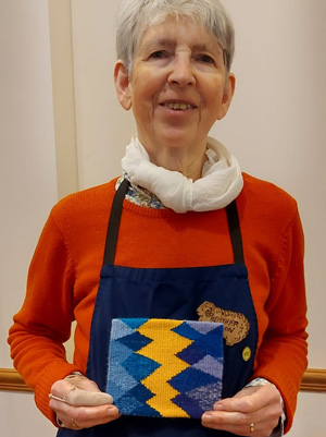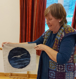 This year’s Challenge was entitled “Out of the Blue”. Members were given two shades of blue dyed Shetland to do as wished with. As ever the results were beautiful, inspiring and fascinating. It never ceases to amaze us how much variations on a theme can be found! Photos were taken at the Challenge presentation in January 2024, many thanks to Denise.