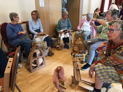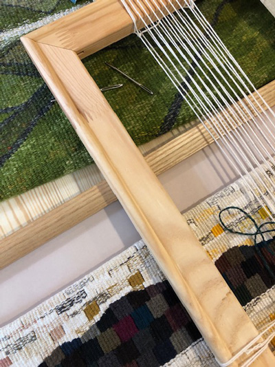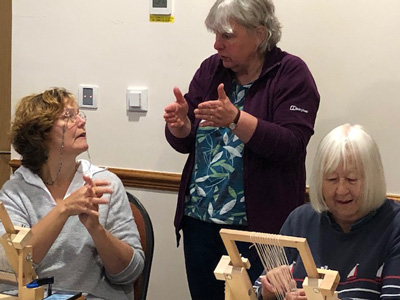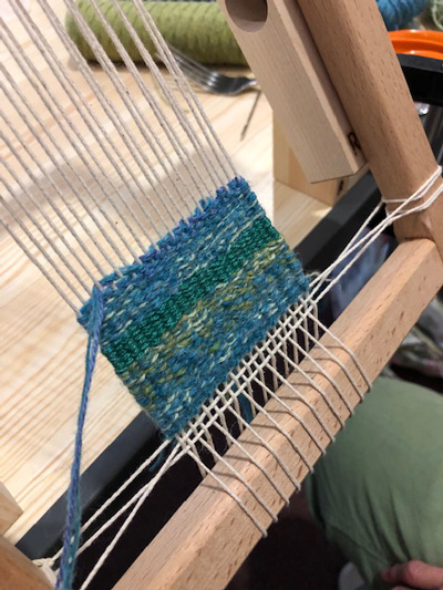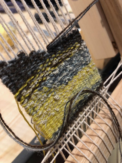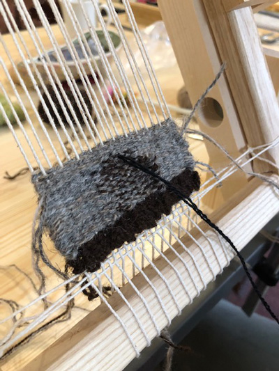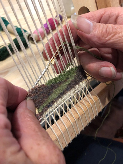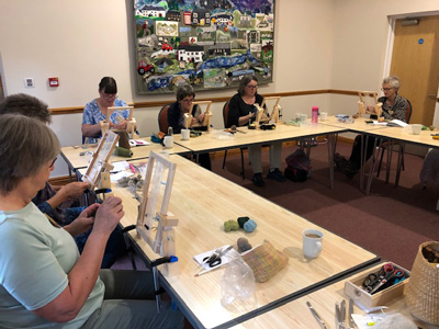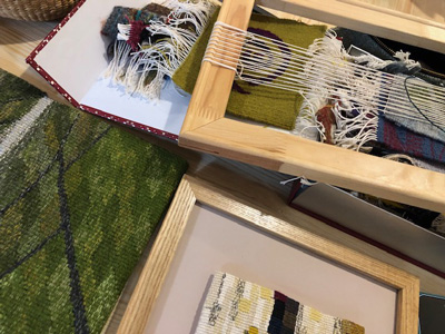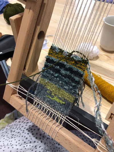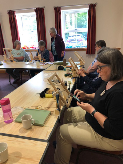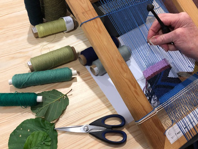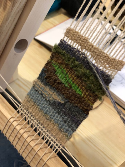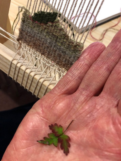 Ten members were treated to a tapestry weaving workshop with Anna Wetherall from Lakes and Lancs Guild, which began with a short foray outside to find leaves for colour and shape inspiration before embarking on a good few hours solid weaving. Members learned new techniques and methods and everyone was happy with their small but beautiful results. Many thanks to Anna for coming.