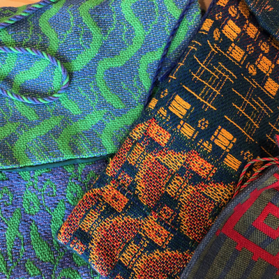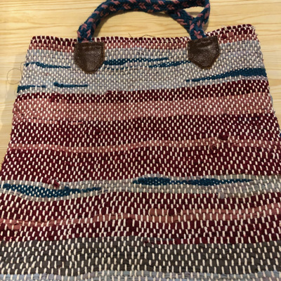 Another gorgeous woven bag by Rosie using left over commercial yarns plus a couple of stripey weaving samples using Guild Challenge fleece spun singles.