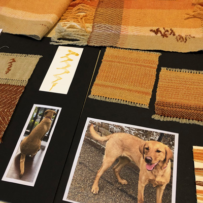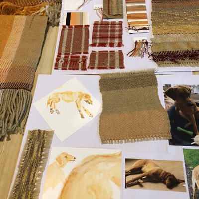 Ooh, a puppy!! Talking of weaving, Carol’s scarf was inspired by her red fox Labrador puppy. We loved her beautiful design workings too. The scarf turned out lovely too.