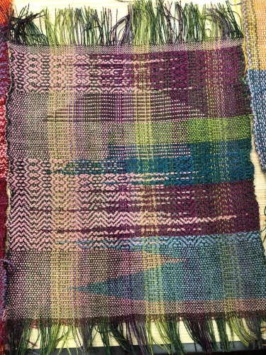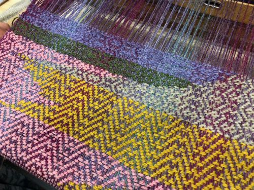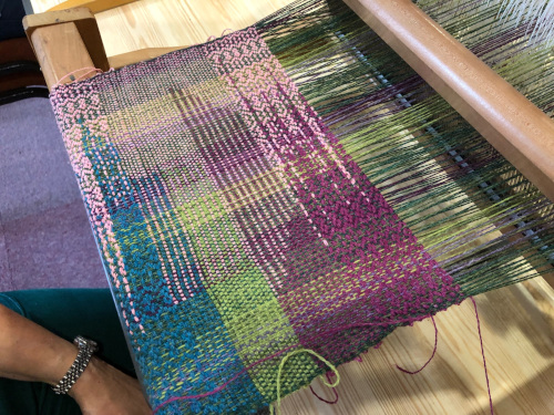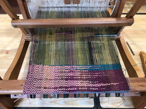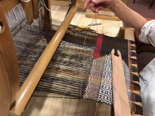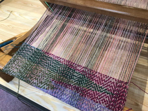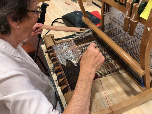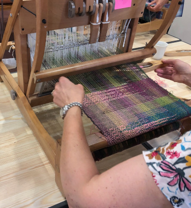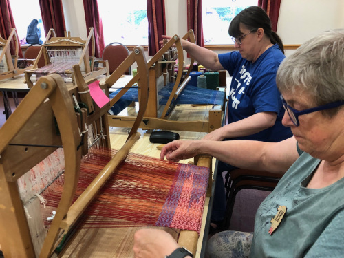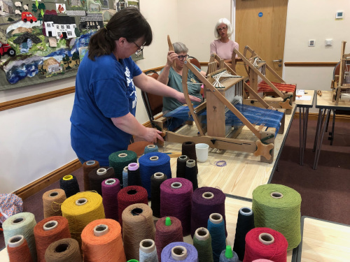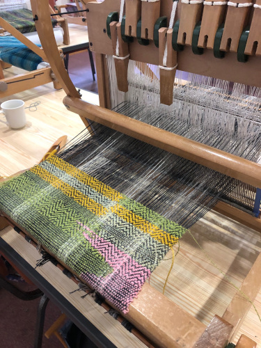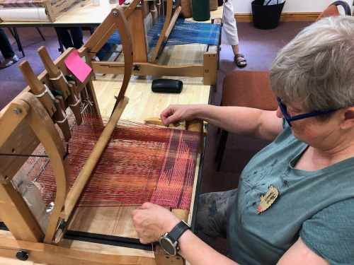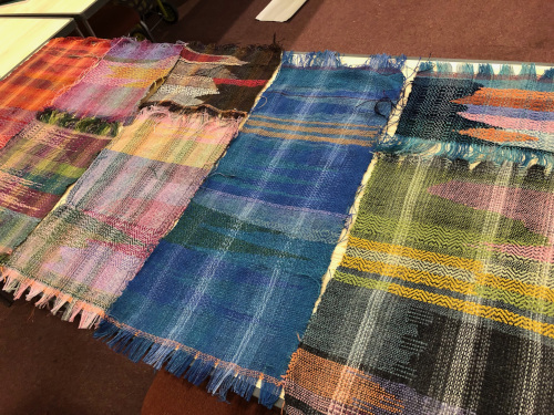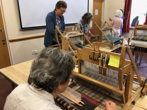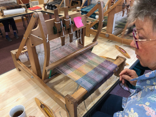 This month’s meeting brought some of our very lucky members a visit from Jan Beadle along with 8 looms already warped up and ready to fly.