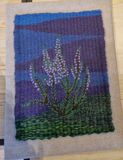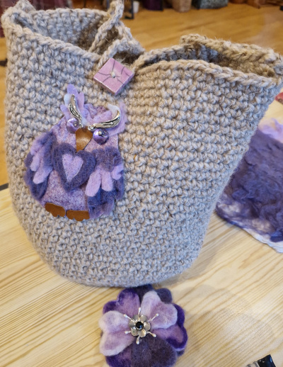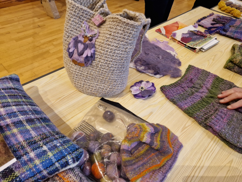 Goodness, that year went quickly. 2025 was a year we spent much time thinking of Heather Seddon, a long time member of the Guild and our chair in 2024 right up until a few short weeks before she passed away. Her family offered her stash of crafting items for sale with funds going to the hospice who cared for her and for a wildlife charity she personally supported. Heather’s stunning collection of work was exhibited at three venues across Cumbria throughout the year. Naturally the Challenge theme for 2025 was going to be “Heather” and the fibre supplied by the Guild to all members were two shades of purple Corriedale and as always our members did not fail to provide a wide variety of beautifully crafted pieces in Heather’s honour. Here we showcase the work presented in January 2026; enjoy!